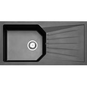 Luquicina LD100BL – Fregadero de cocina reversible de 1 cubeta XL con escurridor, color negro