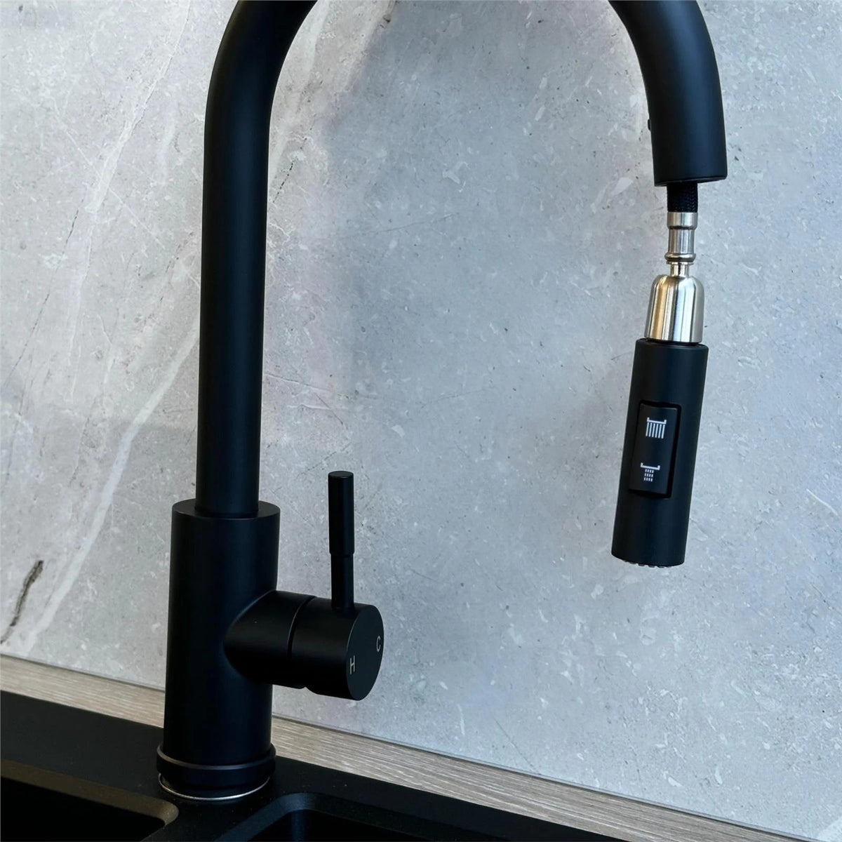 El grifo de cocina Luquicina LE453MB combina estilo moderno y funcionalidad. Su acabado negro mate aporta un toque elegante y versátil, adaptándose fácilmente a distintos estilos de fregadero y encimera. El caño extraíble de cuello de cisne con giro de 360° facilita el lavado y la limpieza. El cartucho cerámico de 35 mm ofrece un control suave y preciso del caudal y la temperatura, garantizando durabilidad y comodidad. Fabricado en latón, acero inoxidable y zinc , destaca por su resistencia y es apto para sistemas de alta presión.