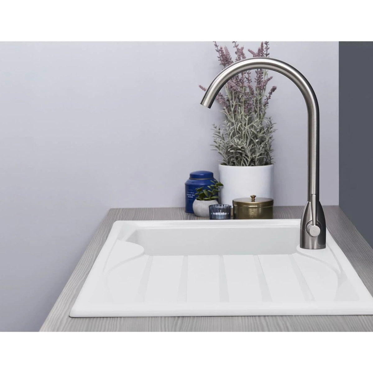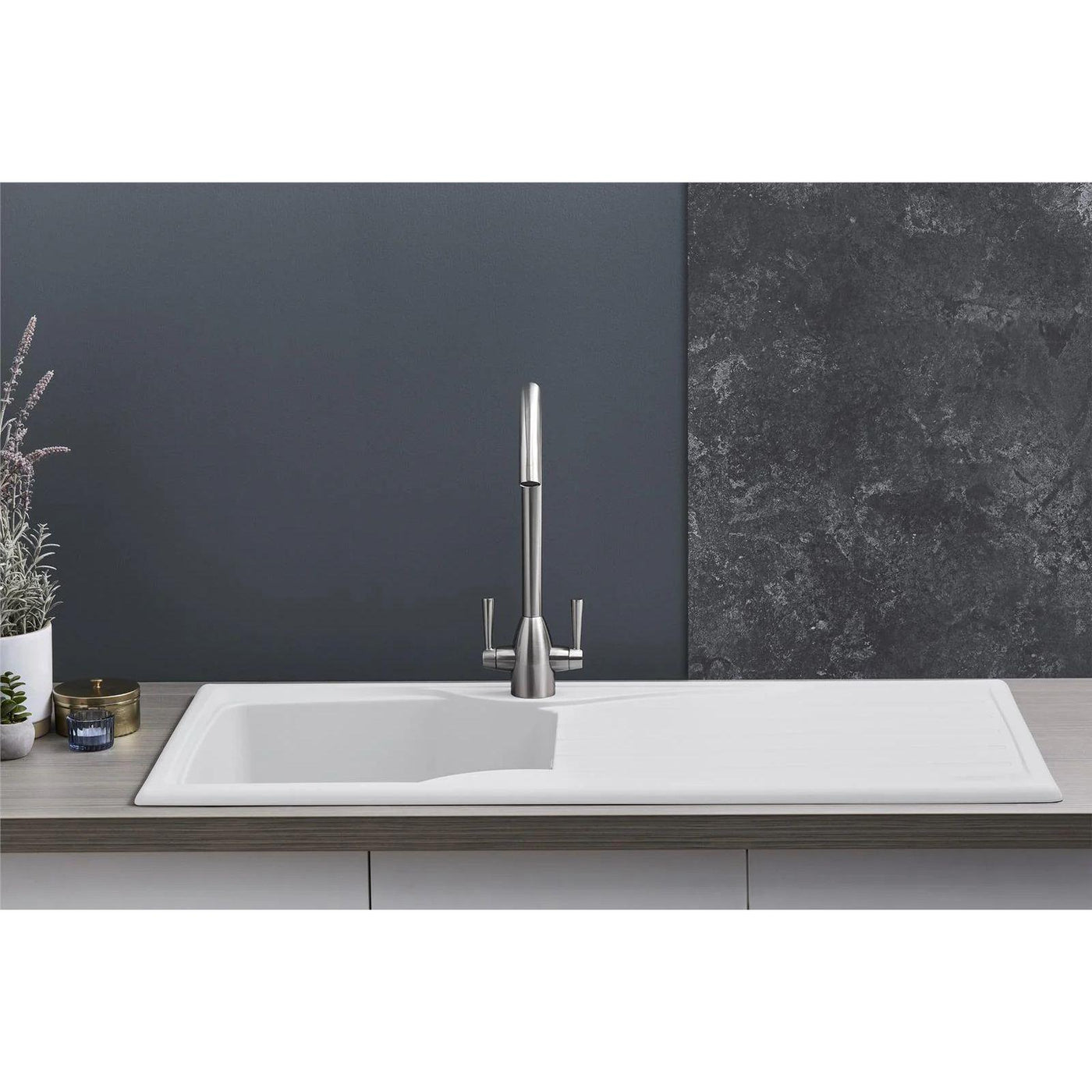 Luquicina LC10WH – Fregadero de cocina reversible de 1 seno con escurridor, blanco