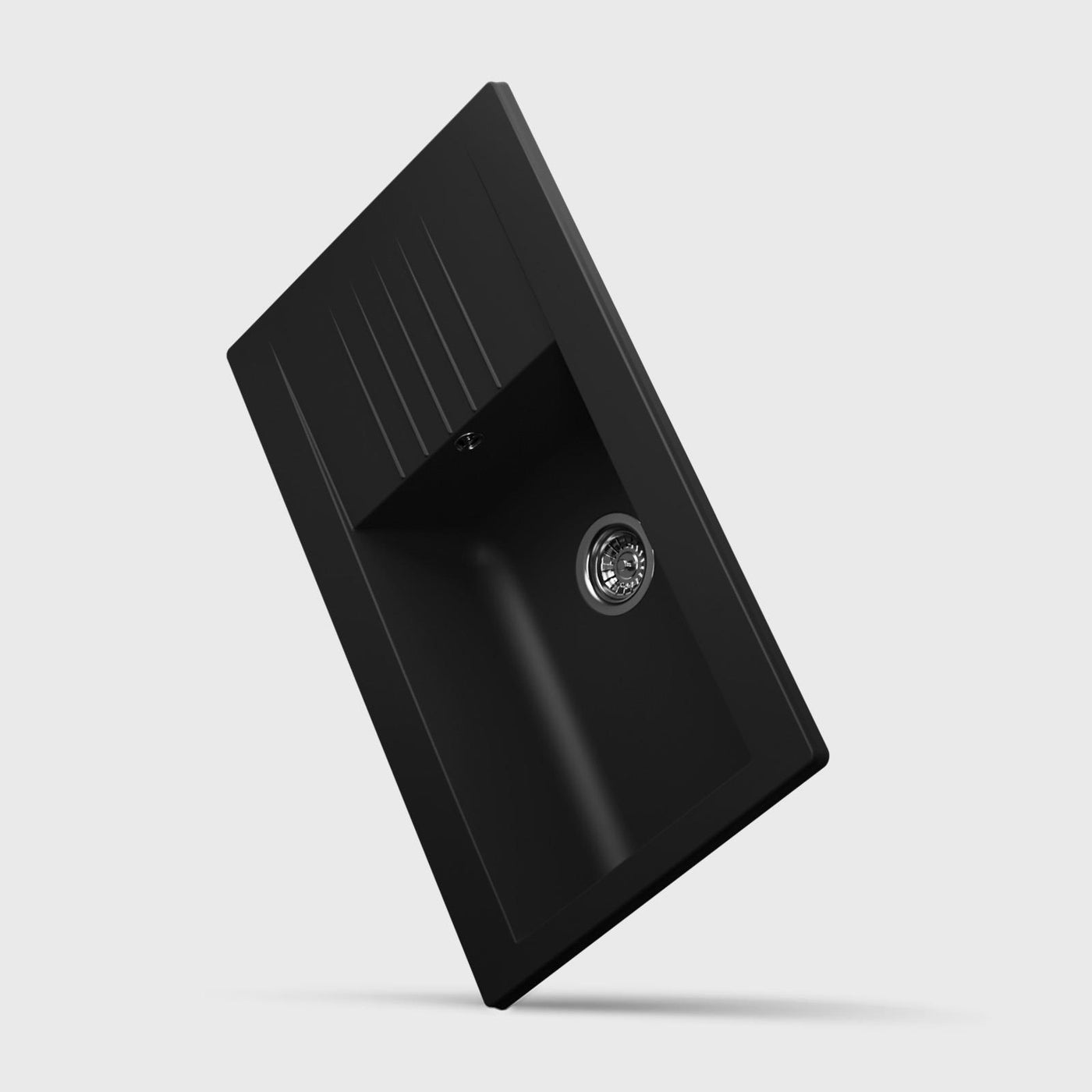 Fregadero de cocina reversible Luquicina LD1BL – 1XL de composite negro con escurridor pequeño