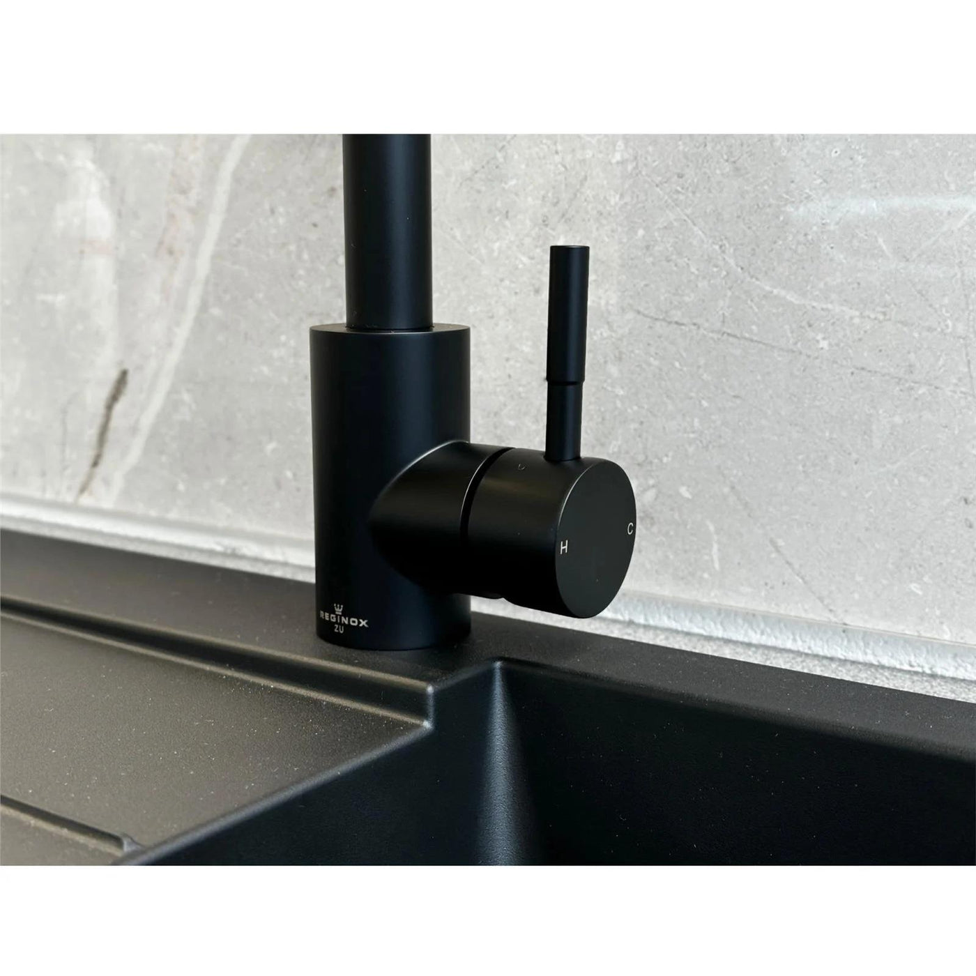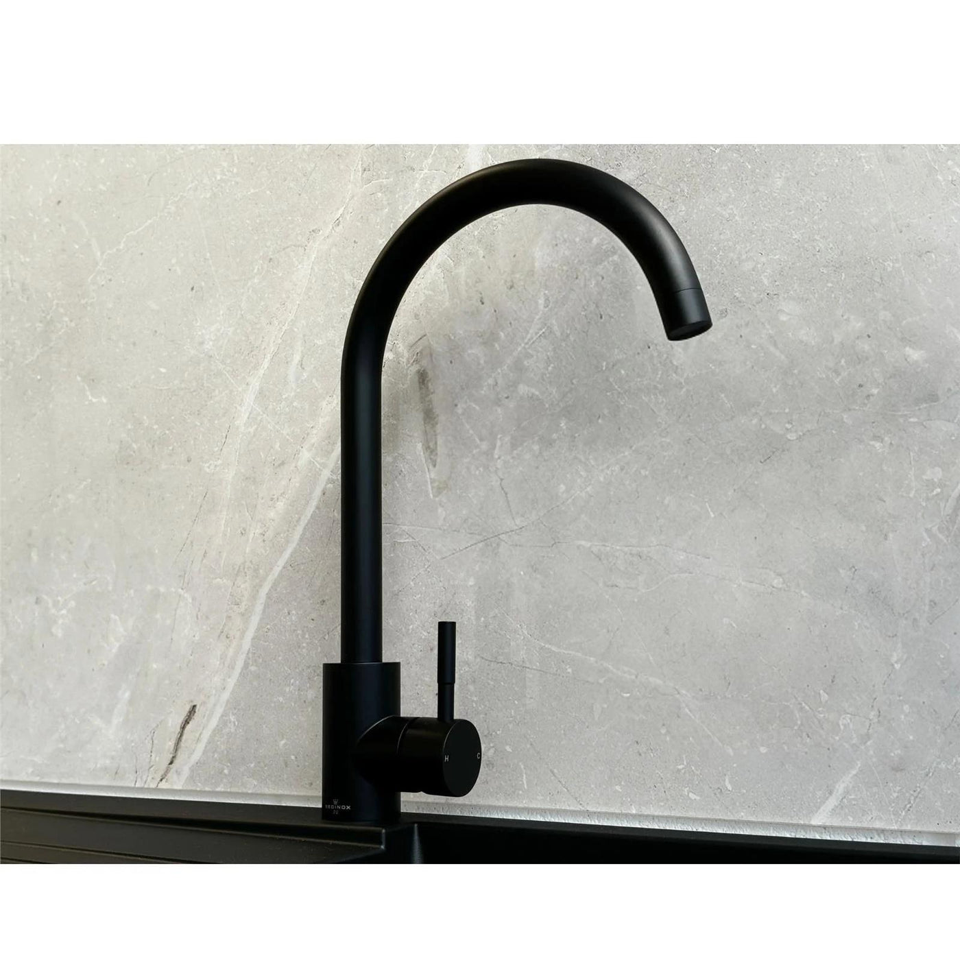 Reginox TARAVO MB – Grifo monomando de cocina de cuello de cisne negro mate